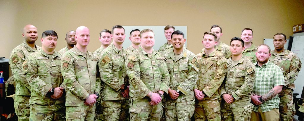 Missile wing military members and civilians pose for photo during a joint Nuclear Security Operations Tactics, Techniques and Procedures rewrite at Minot Air Force Base, North Dakota, Feb. 25, 2026. The rewrite was necessary to account for significant advancements and new implementations within the nuclear security operations field. (U.S. Air Force photo by Airman 1st Class Wesley Davies)