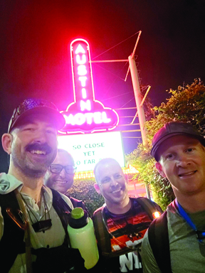 By the early morning hours, after miles of uphill walking in humid Texas conditions, the physical toll had set in. More than halfway through, everyone was hurting. “It took some motivational mind tricks to keep going,” Geske said. “My feet, hips, knees, and ankles were all aching, basically everything from the waist down hurt.” The team relied on each other for encouragement, taking turns pushing one another forward. “We could look at each other and take comfort,” he said. “It was a battle every step mentally.”