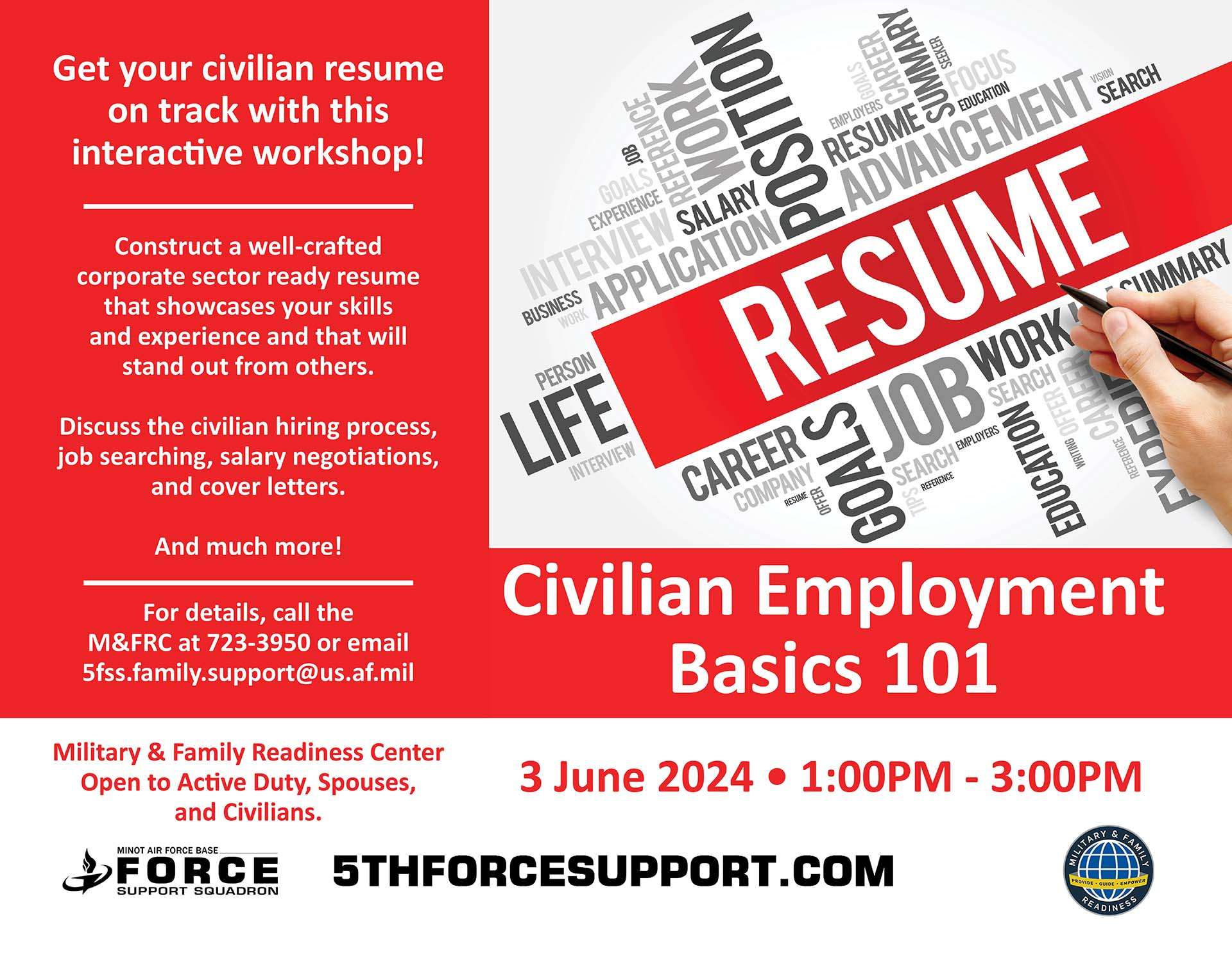 Get your civilian resume on track with this interactive workshop at the Military & Family Readiness Center on 3 June 2025 from 1:00PM – 3:00PM!