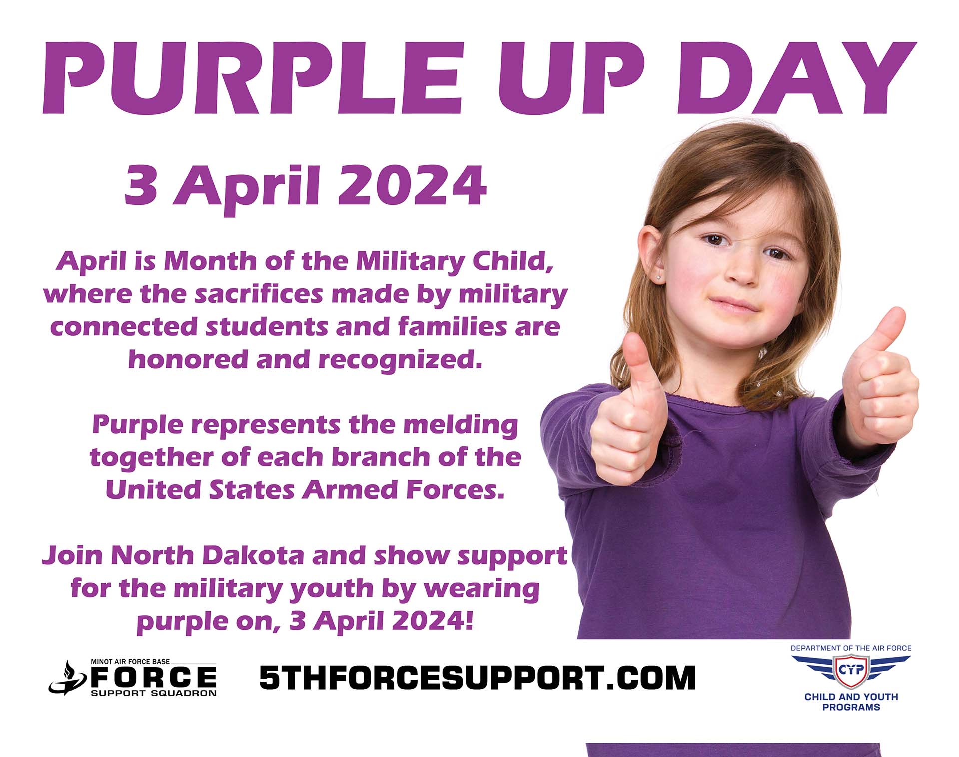 Join the entire state of North Dakota and show support for the military youth by wearing purple on, 3 April 2024!