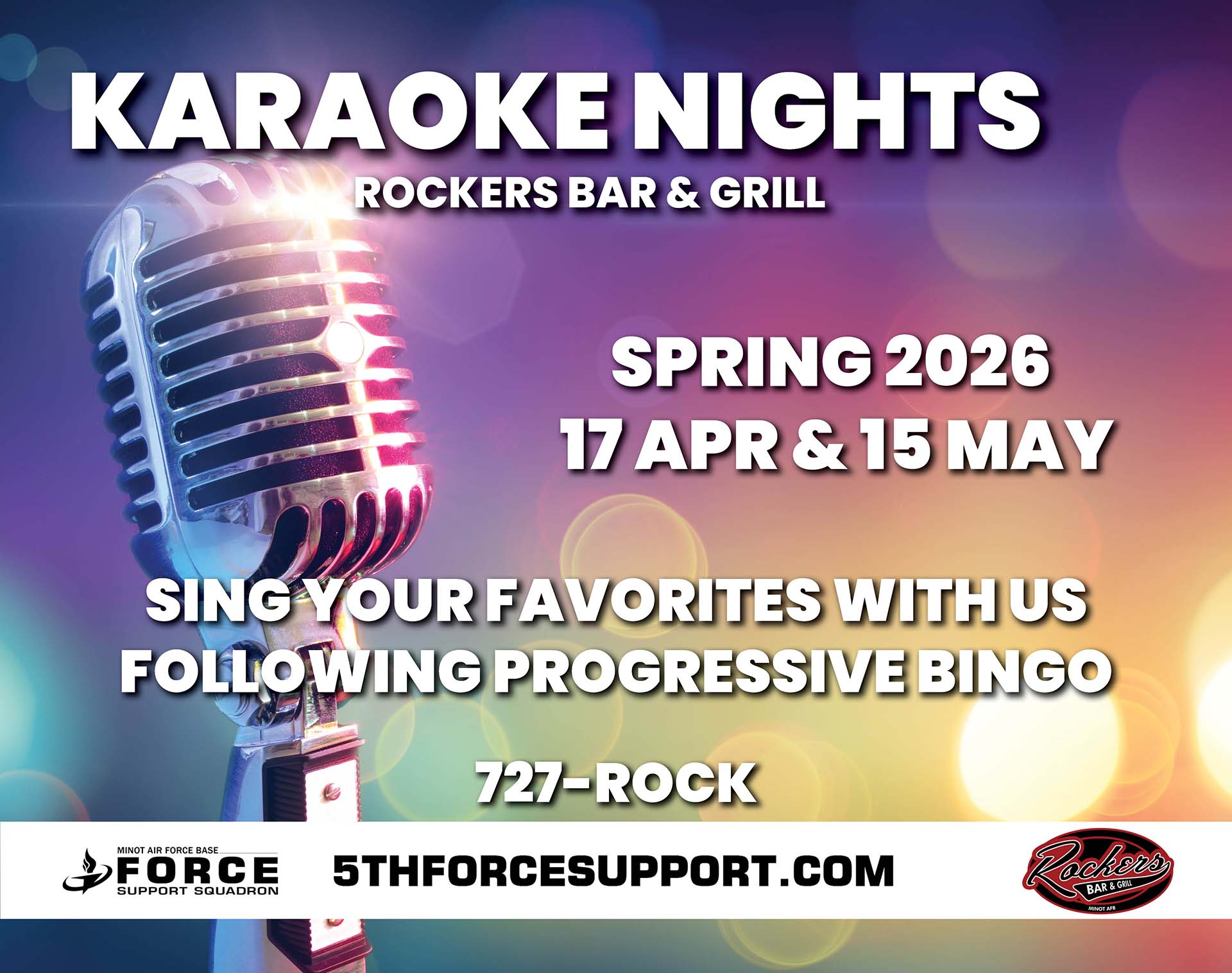 Join us after Progressive Bingo for some fun Karaoke! Sing along to your favorites or cheer on you friends!